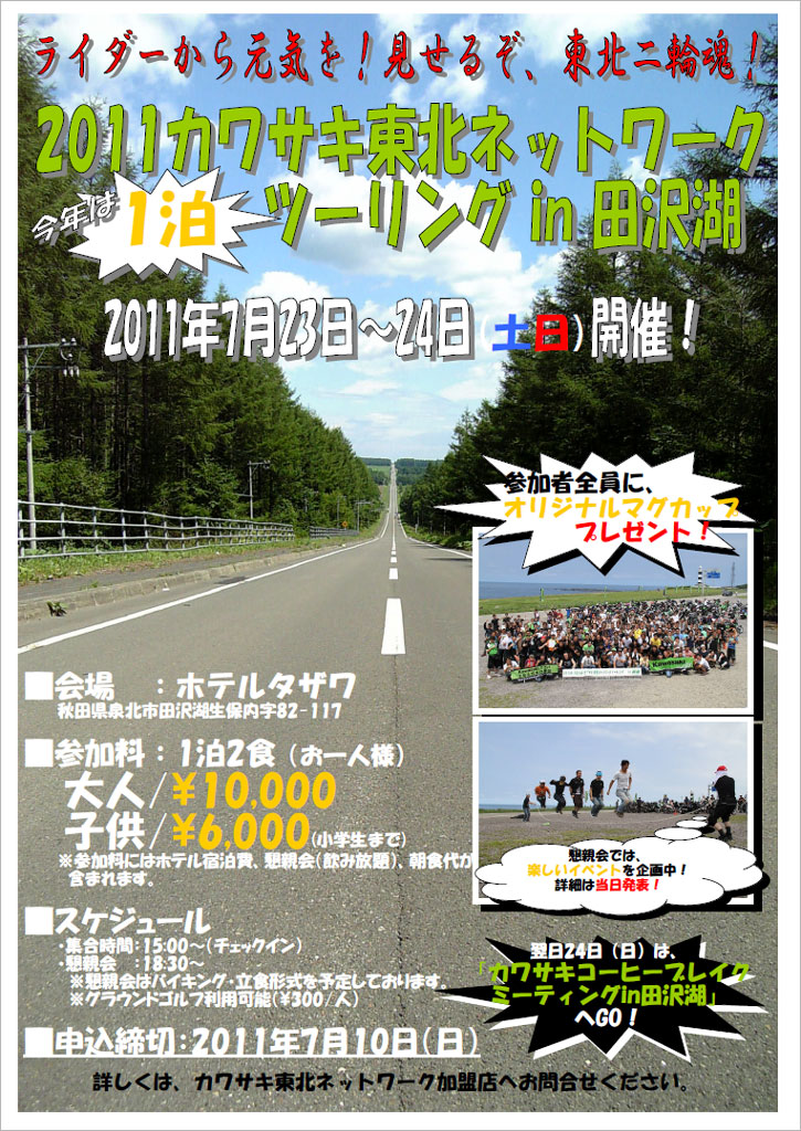 2011 カワサキ東北ネットワーク 今年は1泊ツーリング in 田沢湖
